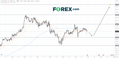 上周五,美国股市涨跌互见。道琼斯工业平均指数反弹112点(-0.39%)至28606,标普500指数持平于3483,纳斯达克100指数进一步下跌46点(-0.39%)至11852。道琼斯工业平均指数(日线图):仍然看涨来源:GAINCapi
